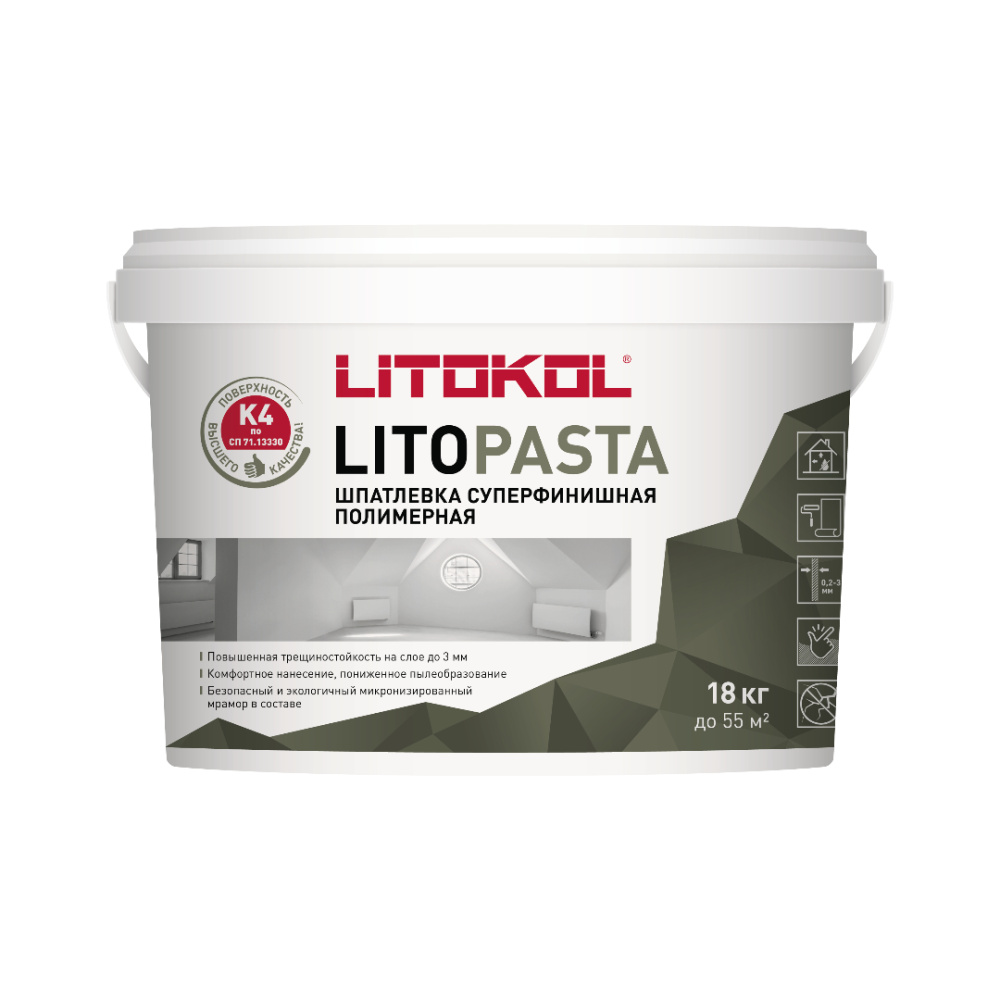 LITOPASTA - суперфинишная полимерная шпатлевка, 18 кг