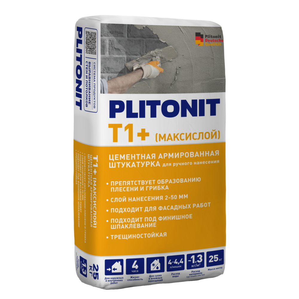 PLITONIT T1+ штукатурка для наруж и внутр работ с армир. волокнами- 25 кг