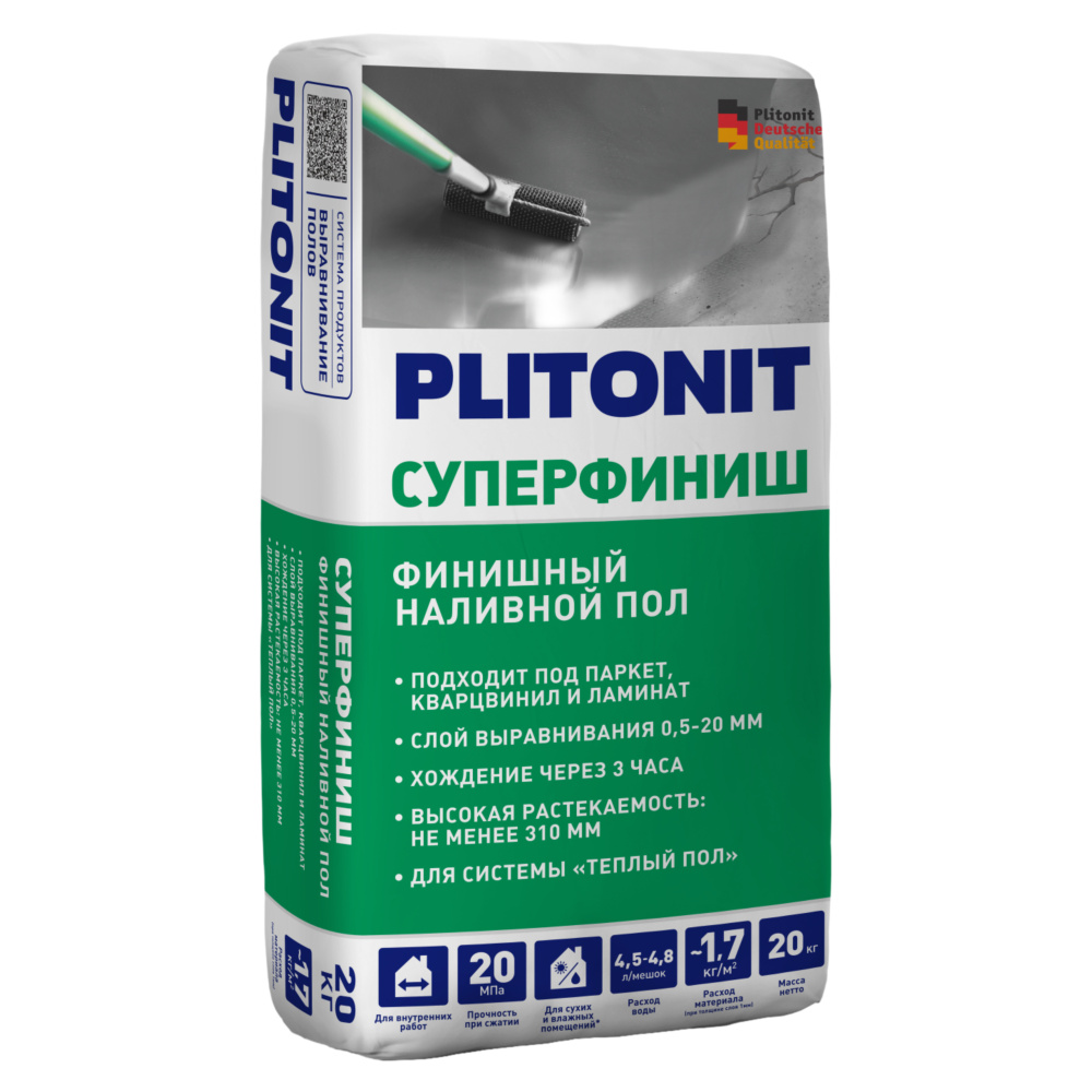 Ровнитель быстротвердеющий PLITONIT СуперФиниш 20 кг (наливной пол)